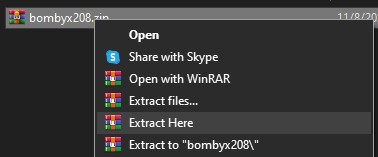 Make sure to remove (delete) any previously installed versions of Bombyx before copying the new version.